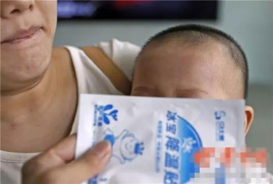 上月15日,7个月大的乐乐(化名)发烧了,为了给乐乐退烧,父母给他用了在母婴店买的贝优美降温贴。没想到贴上之后,乐乐额头发红,之后逐渐变黑,一个多月了,黑色依然褪不掉。