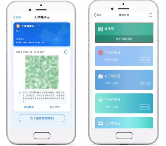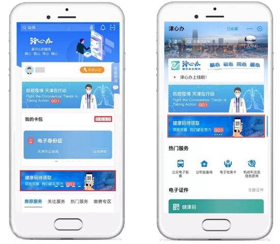 全体市民和拟入津人员可在“津心办”APP或“津心办”支付宝小程序在线申报信息,申领天津疫情防控和复工复产“健康码”,实施“绿码、橙码、红码”三色动态管理,实现“一次申报、全市通用、动态管理、分类管控”。“绿码”人员亮码出入全市各小区、企业、机场(含候机厅)、车站(含火车、长途客运候车室)、农贸市场、大型超市、商场、门脸店铺、学校、银行等人员流动性较大、可能产生聚集的场所,以及地铁、公交、长途客车、出租车、网约车等公共交通工具,体温检测正常可出行和复工;“橙码”人员严格落实居家医学观察要求,自觉接受社区管理;“红码”人员由相关机构和社区严格管控。“红码”“橙码”人员满足疫情防控条件正常后转为“绿码”。出入医疗卫生机构人员以及无码人员按原有方式通行。市民可拨打服务热线88908890进行咨询。