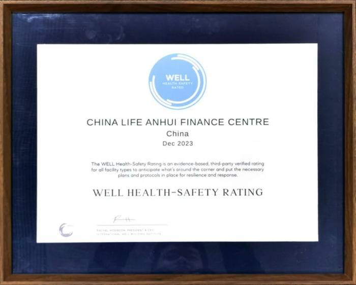图:中国人寿安徽金融中心获得WELL HSR认证