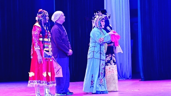 戏曲串烧大联唱随即登场,天津市老年大学甜园文学社艺术团演唱的京歌《红梅赞》、王彤、张志娟、张明、白昀表演的评剧《流派串烧》、越剧社 沈茵、杨雪琴(票友)演唱的越剧《孔雀东南飞-洞房》和“票友”程远萍献唱的京剧《贵妃醉酒》使全场观众过足了“戏瘾” 。