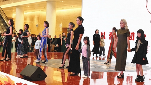 演出环节精彩纷呈,晚礼服秀、童装秀及旗袍秀轮番上演,优雅的步伐、纯真的笑容与典雅的韵味交织,传递出美的多元表达。在“大手牵小手”环节,孩子们与旗袍表演者手牵手定格造型,寓意传承与爱的延续。玎玎老师带领全场喊出“以爱为初心,用美成就你”的口号,将活动推向高潮。