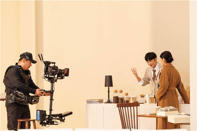 在资源配置上,将讯道系统集中用于开场秀、中场秀等对画质与机动性要求更高的环节,同时以轻量化设备覆盖标准化电商带货场景,在专业效果与成本控制之间实现了有效平衡。机位部署上,走秀环节由9机位组成,覆盖咖啡厅、室外雪景等分场景,结合远程控制系统,精准捕捉明星主播、模特的动态走秀与互动;产品讲解环节,则采用5台佳能EOS C80,实现场景的全方位覆盖,确保穿搭展示与面料细节的高品质呈现。在视觉呈现方面,得益于佳能色彩科学,保障了全流程、多机位视觉呈现的一致性。在工作流程设计上,根据不同环节量身定制技术方案——秀场环节侧重电影级表达,采用讯道系统,集合佳能镜头原厂生态优势以及广电系统无缝集成,支持复杂运镜,产品讲解环节则以效率为先,轻量化系统在保证画质的同时提升执行敏捷性。