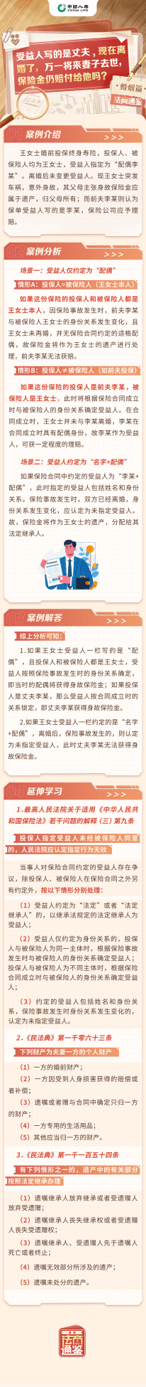 中国人寿寿险天津市分公司金融知识科普:受益人写丈夫,离婚保险金可赔他吗?