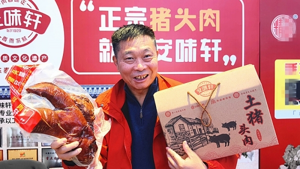 面对新时代的挑战与机遇,安兴强分享了公司的创新实践。他们将古老的“八字古卤”非遗技艺与现代标准化流水线生产相结合,让科技为传统赋能,在确保效率的同时,丝毫不放松对每一环节品质的监控。他说:“我们严格遵循古法生产流程,坚守卤味品质的最高标准,核心目标就是全力弘扬这份非遗文化与老字号精神。”他动情地补充道,“我们常说,‘能吃上安味轩猪头肉的人是有福气的’。这不是一句简单的广告,而是我们的心声。我们倾尽所能,就是为了让每一位喜爱猪头肉的消费者,都能品尝到这份带着温度的匠心味道。”