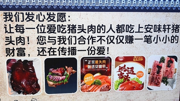 专访的最后,安兴强向所有来宾和潜在合作伙伴表达了诚挚的发心与发愿:“我们的愿望是,让每一位爱吃猪头肉的人都吃上安味轩猪头肉!我们相信,与安味轩合作,您收获的不仅是一笔商业上的财富,更是在共同传播一份对传统美食的热爱与珍视。正宗猪头肉,就选安味轩,‘好子运,从头开始’。肉香味正,香而不腻。”