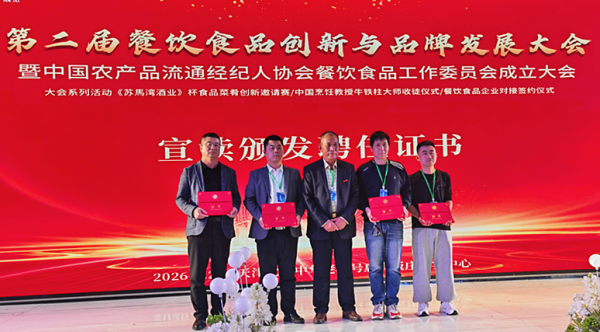 大会率先举行餐饮食品工作委员会成立仪式。齐朝霞代表指导单位宣读中国农产品流通经纪人协会副会长兼秘书长李葭同志的贺词。李葭在贺词中指出,餐饮食品行业是连接农产品生产与消费的关键枢纽,该委员会的成立是完善行业生态、推动产业升级的重要举措。她强调,委员会要立足流通赋能,聚焦数字技术与餐饮全链条的深度融合,助力名优农产品精准对接餐饮酒店与食品生产企业,以标准化、智能化手段优化食材采购、客户服务等核心环节。