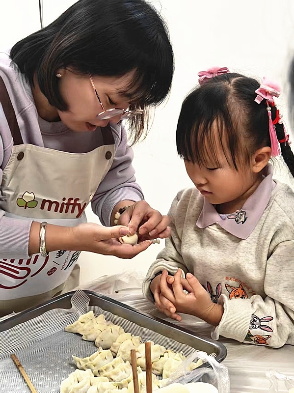 活动中“圆梦厨房”的厨娘和女企业家带着自己的孩子围坐在老人身边,给老人家带上喜庆的红围巾、包制象征团圆的饺子、聆听长者讲述往昔故事,代际隔阂悄然消融。灶台边、餐桌旁,欢声笑语与温暖叮咛交织,爱与陪伴在蒸腾的热气中自然流淌,织就一幅温馨动人的“家”画面。