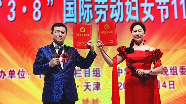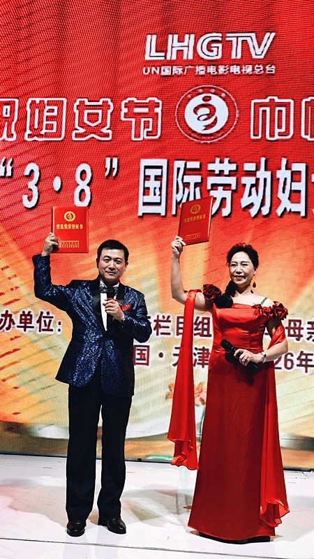 随后,进行了“萱花奖金牌主持人”颁奖环节,优秀主持人李兆祥、周永欣获此殊荣,齐方忠总导演与石春莲主席共同为他们颁发了金牌主持人荣誉证书。