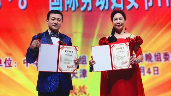 主持人 李兆祥 周永欣 同台主持本次演出。并同时获得“萱花奖金牌主持人”称号,齐方忠总导演与石春莲主席共同为他们颁发了荣誉证书。