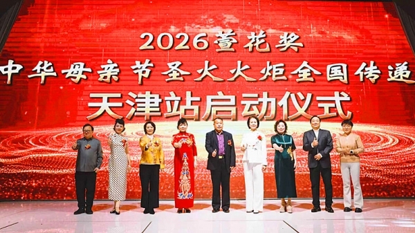 紧接着,“2026中华母亲节圣火火炬全国传递天津站”的启动仪式也隆重举行。总导演齐方忠、中国区主席石春莲、王雯静主任、许芙蓉会长、王佑西院长、天津赛区主席金玲、天津赛区执行主席牟培、歌唱家石广羽、总经理伊志强等嘉宾再次携手,点燃了圣火传递的激情。熊熊燃烧的圣火象征者母爱与孝道精神的生生不息,将跨越山河,在神州大地上接力传递。