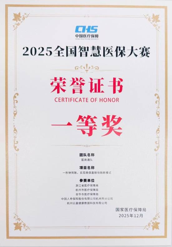 2025年度,杭州市惠民保、企业补充医疗保险、个人商业医疗保险等商保“一站式结算”累计理赔94.52万人次,惠及参保群众9.14万人,赔付金额2.62亿元。中国人寿寿险杭州市分公司凭借丰富的项目运营经验,为系统研发提供了大量真实理赔数据及核心业务支撑。项目的落地不仅提升了医疗保障服务的公平性与可及性,完善了多层次医疗保障体系,更增强了社会互信,为数据要素流通应用树立了行业标杆。